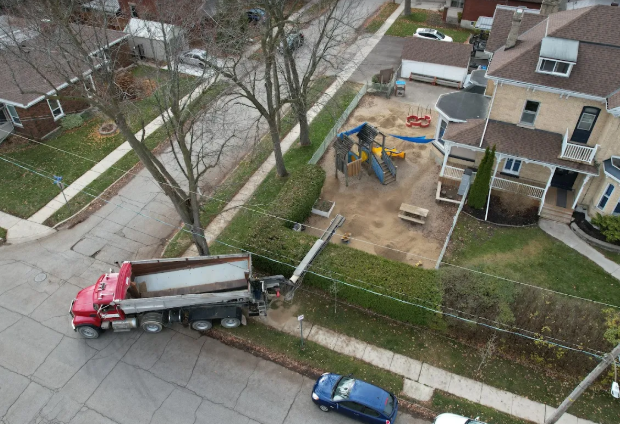 A10: Yes, we have a slinger truck service that allows for efficient and precise delivery and installation of materials like screened topsoil, gravel, and aggregate directly to your desired location, minimizing mess and labor.